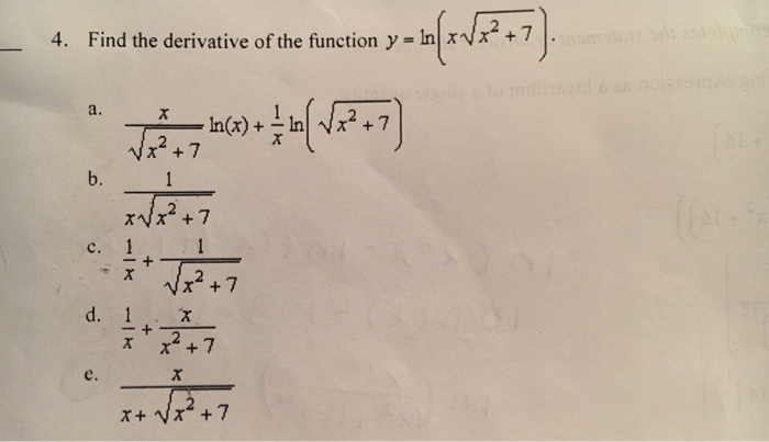 Solved Find The Derivative Of The Function Y Ln X Squa Chegg Com